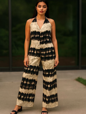 Women Multi Printed Stretchable Jumpsuit with Back Cut-Out