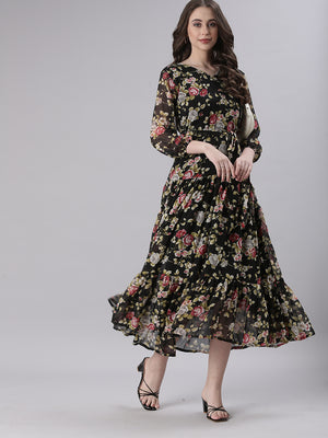 Women Black Bandhani Printed Ethnic Fit & Flare Dress