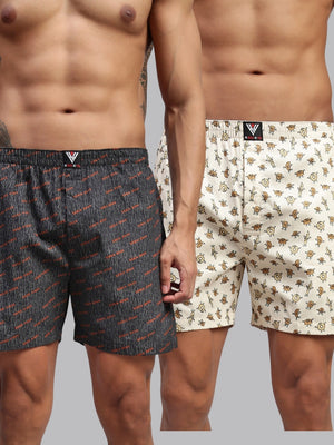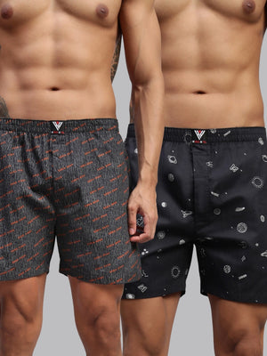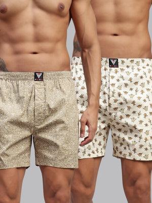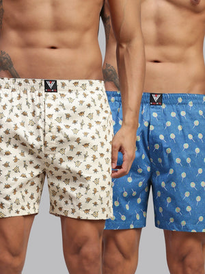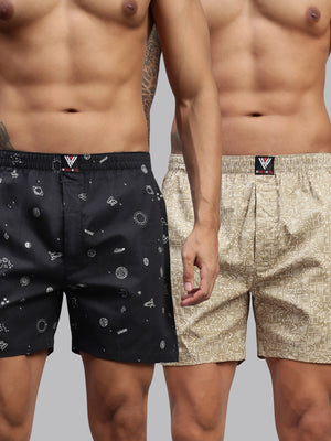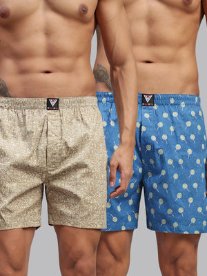 Men Pack of 2 Printed Cotton Boxer Shorts