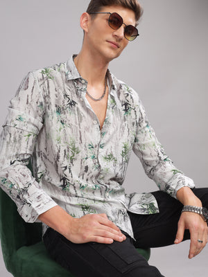 Men Dark Green Slim Fit Spread Collar Full Sleeve Casual Shirt