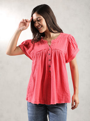 Women Pink Double Gauze Relaxed Top