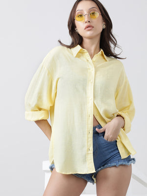 Women Oversize Drop Shoulder Yellow Shirt