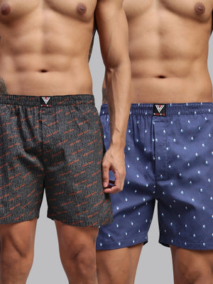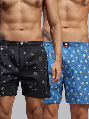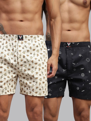 Men Pack of 2 Printed Cotton Boxer Shorts
