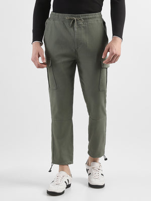 Men Olive Cotton Polyester Cargo Pants with Adjustable Bottom Hem