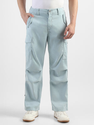 Men Light Blue Mid Rise Comfort Fit Cargo with 6 pockets