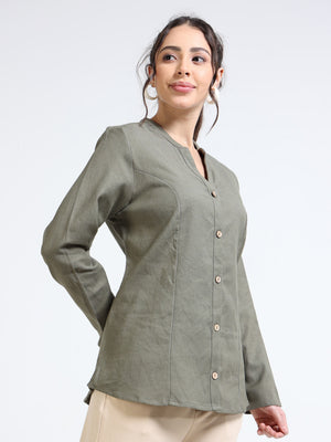 Women Linen Blend Olive Shacket