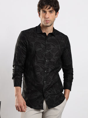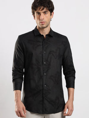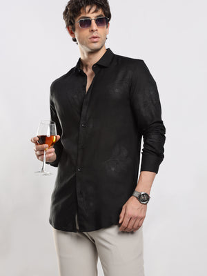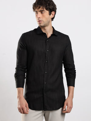 Men Black Cotton Slim Fit Striped Glitter Shirt
