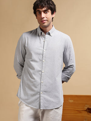 Men Black Cotton Oxford Slim Fit Striped Shirt
