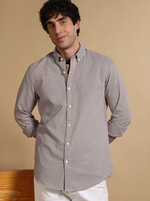 Men Brown Cotton Oxford Slim Fit Mini Checks Shirt