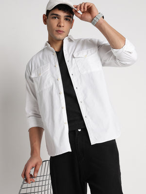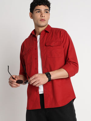 Men Solid Utility Casual Shirt