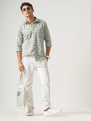 Men Green Checked Shirt