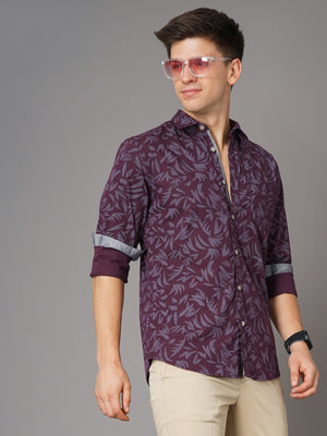 Men Mauve Floral Print Shirt