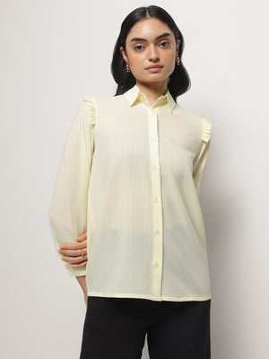Women Yellow Ruffle Shoulder Semi Sheer Shirt