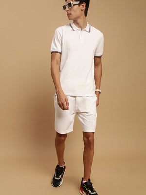 Men White French Terry Short