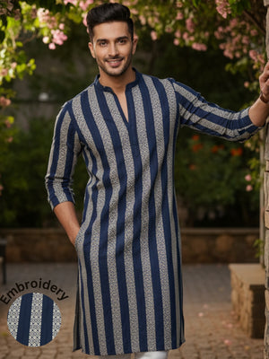 Men Magenta Cotton ethnic motif Printed Straight Kurta
