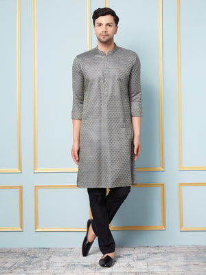 Men Pink Embroidered Sequins Cotton Chanderi Straight Kurta
