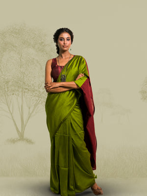 Geet Suhani Olive Green Handloom Cotton Acrylic Saree