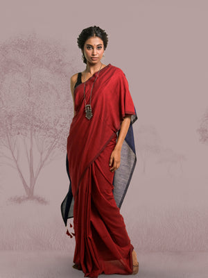 Ishq ke Jharokhe Red Handloom Cotton Acrylic Saree