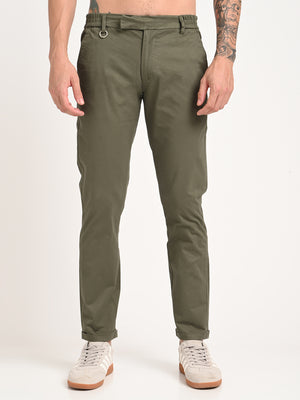 Men Olive Mid Rise Regular Fit Trouser