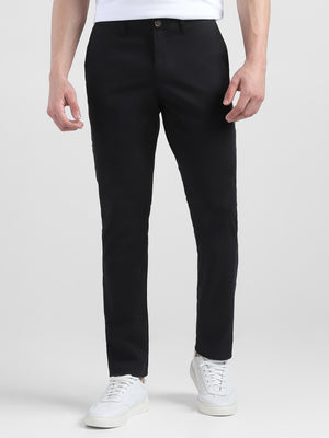 Men Black Mid Rise Regular Fit Trouser