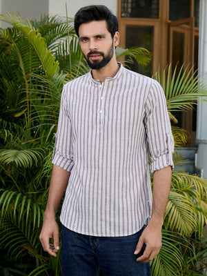 Men Cream Ethnic Motifs Silk Jacquard Woven Design Straight Kurta