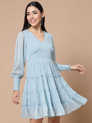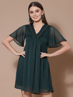 Women Green Swiss Dot Odour Free Crepe Midi Dress