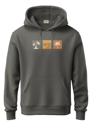 Men Grey Cotton Fleece Printed Hoodie