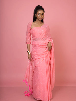 Rani pop Baby Pink Handloom Mul Cotton Polka Dotted Saree