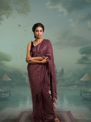 Kanchan Burgundy Handloom Mul Cotton Saree with Zari Stripes
