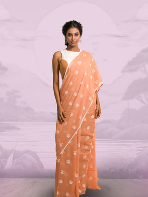 Paw-radise Mocha Handloom Mul Cotton Saree with Handblock-Printed Paw Motifs
