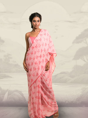 Winx Club Baby Pink Handloom Mul Cotton Saree with Handblock-Printed Butterfly Motifs