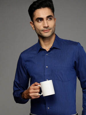Men Blue Cotton Blend Slim Shirt