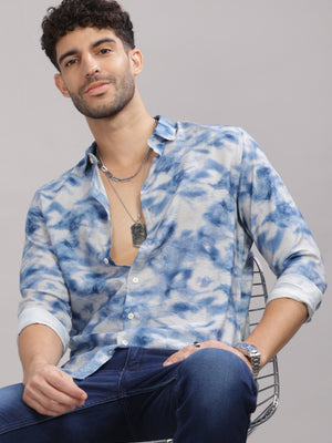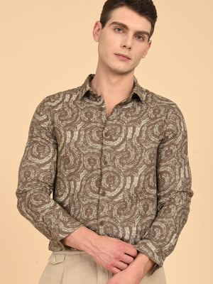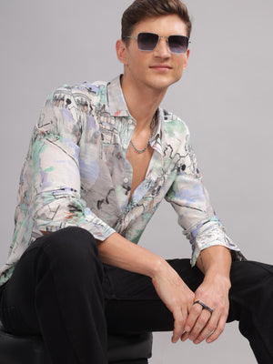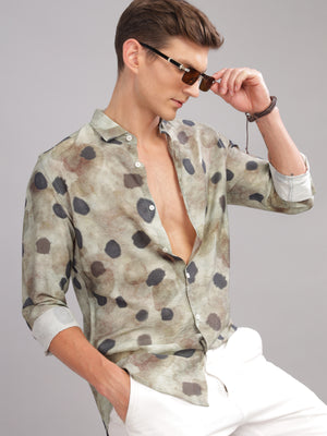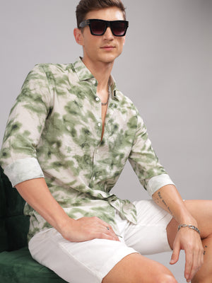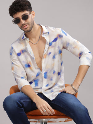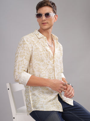 Men Cream Regular Fit Spread Collar Full Sleeve Hoodie