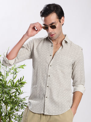 Men Beige Geometric Print Single Pocket Shirt