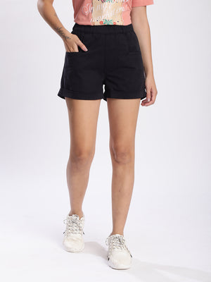 Women Black Stretchable Casual Shorts