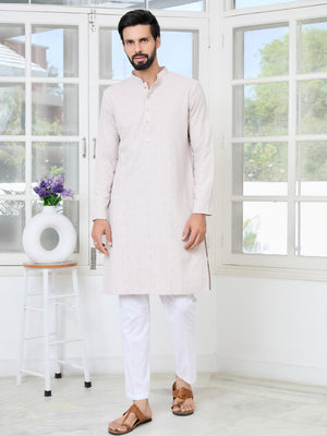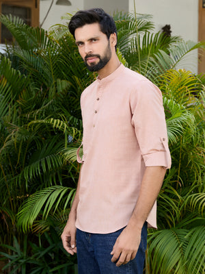 Men Pink Solid cotton Short Kurta