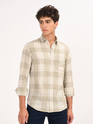 Men Green Linen Cotton Checked Shirt