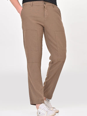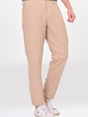 Men Ivory Linen Detailed Trouser Taupe