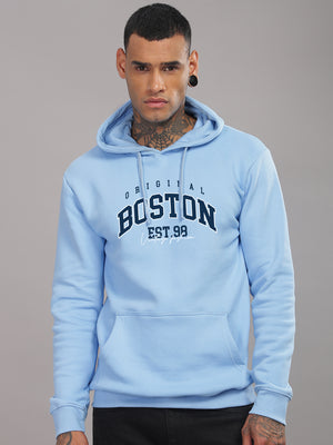 Men Sky Blue Printed Hoodie