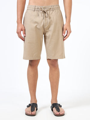 Men Khaki Linen Drawstring Shorts