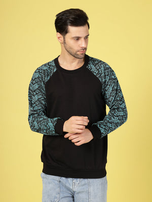 Men Black Fleece With Stripe Tape Patch On Sleeve Hooded SweaT-Shirt