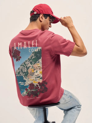 Men Maroon Graphic Back Print Oversized T-Shirt