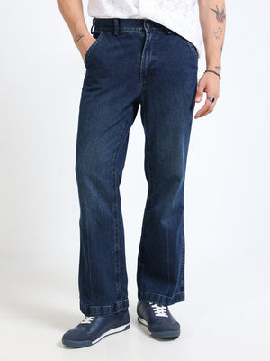 Men Dark Blue Mid-Rise Elasticated Waist Relaxed Fit Jeans