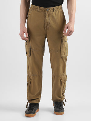 Men Khaki Cotton Blend Cargo Pants with 8 Pockets