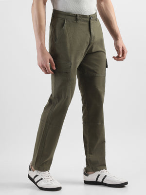 Men Olive Comfort Cargo Pants with 6 Pockets