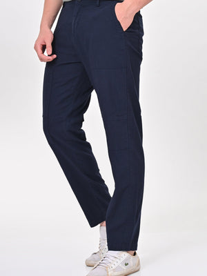 Men Navy Cotton Blend Cargo Pants with 12 pockets