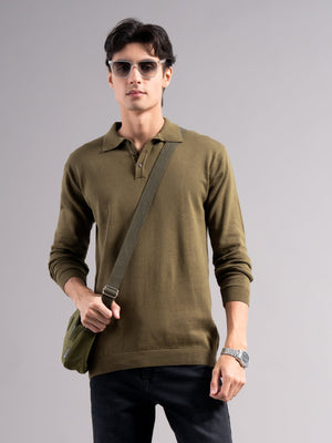 Men Arven Olive Knit Polo T-Shirt