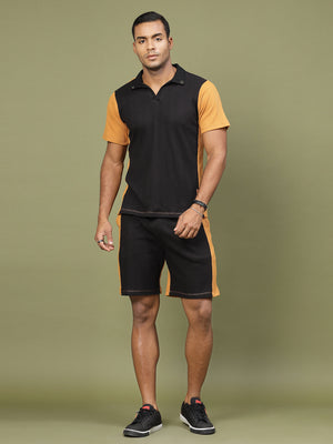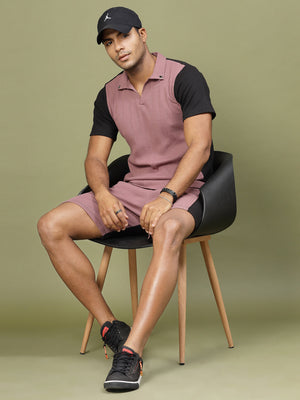 Men Colorblock Rib Polo Co-ords