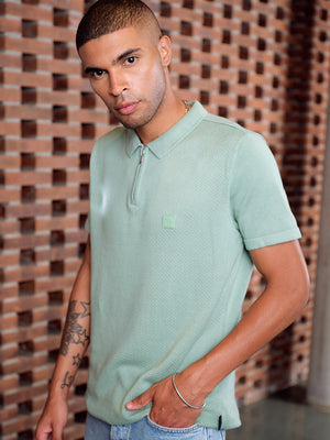 Men Ardor Edition Green Solid Pure Cotton Self Design Polo Collar Slim Fit T-shirt