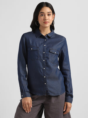 Women Coral Spread Collar Long Sleeves Shirts